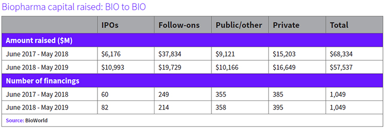 Despite the uncertainties of the capital markets during the past 12 months, public and private biopharma companies have had no difficulty raising capital – almost $58 billion, in fact, generated from 1,049 transactions, according to data from BioWorld. (See Biopharma capital raised: BIO to BIO, below. )